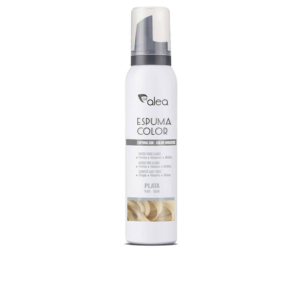 Productos de peluquería Azalea. ESPUMA COLOR #plata. Esta espuma no solo moldea el cabello, sino que también lo tonaliza, aportando reflejos plateados. Además, proporciona volumen y un acabado brillante.