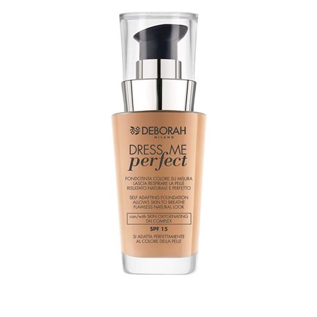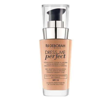 La Base de Maquillaje Fluida Dress Me Perfect de Deborah Milano es una base ligera y de cobertura modulable que se adapta perfectamente al tono y textura de la piel para un acabado natural y radiante. Su fórmula innovadora, enriquecida con pigmentos reflectantes de luz, ayuda a minimizar imperfecciones y unificar el rostro sin efecto máscara. Gracias a su textura fluida, se aplica y difumina fácilmente, proporcionando una sensación cómoda y sin pesadez. Con su presentación de 30 ml, es ideal para quienes buscan un maquillaje duradero con un efecto fresco y luminoso.