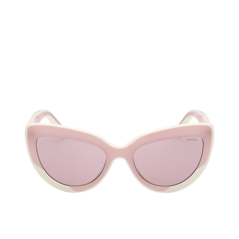 Gafas de sol EP0196 74Y de PUCCI. Este modelo cat-eye para mujer cuenta con una montura de plástico en color rosa y otros tonos. Sus cristales son de un atractivo color violeta. Las medidas incluyen un ancho de puente de 20 mm, un diámetro de cristal de 56 mm y unas patillas de 140 mm.