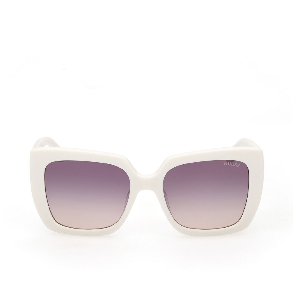 Gafas de sol GU7889 01T para mujer con diseño cuadrado. Presentan una montura de plástico en un elegante color negro brillante y cristales en tono burdeos degradado. Las especificaciones son las siguientes: ancho del puente de 18 mm, diámetro de los cristales de 53 mm y longitud de las patillas de 140 mm.