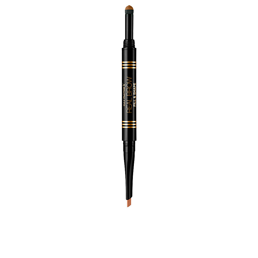 REAL BROW Fill & Shape de MAX FACTOR es un lápiz de cejas de alta precisión, diseñado especialmente para rellenar y dar forma a tus cejas. Logra un aspecto natural gracias a su esponja, que facilita el difuminado. Consigue un acabado impecable y duradero siguiendo solo dos sencillos pasos.