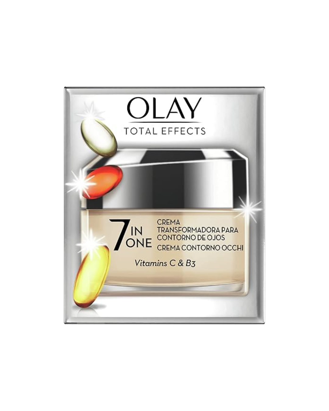 La Olay Total Effects 7-en-1 Contorno de Ojos es una crema antiedad diseñada para abordar múltiples signos de envejecimiento en la delicada zona del contorno ocular. Su fórmula enriquecida con un complejo vitamínico actúa eficazmente para mejorar la apariencia de la piel alrededor de los ojos.