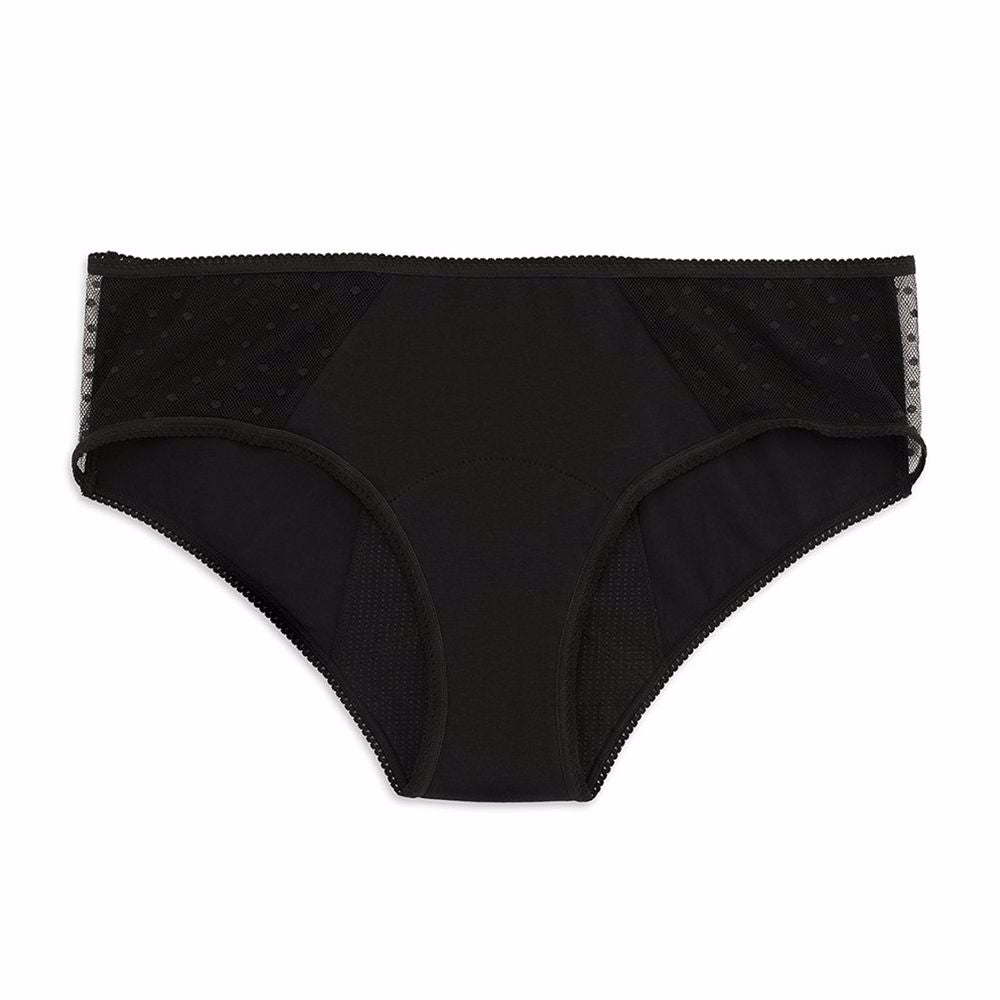 Las braguitas menstruales KIWITAS CLASSIC PLUMETI en color negro de PLATANOMELÓN son la solución perfecta para despedirte de esas viejas y manchadas bragas que usamos durante el ciclo menstrual. Ahora es el momento de sentirte cómoda y segura, luciendo piezas bonitas en esos días del mes. ¡Descubre una forma más saludable y sostenible de afrontar la menstruación! Estas braguitas están diseñadas con 4 capas absorbentes que pueden contener hasta 50 ml de líquido y cuentan con tecnología antibacteriana, lo que te brinda tranquilidad y confort durante todo el día (y la noche).