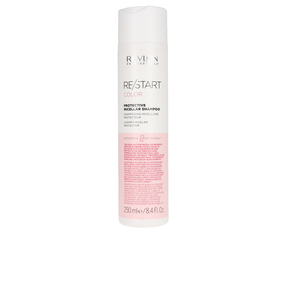 El champú micelar e hidratante RE-START de Revlon está diseñado para cabellos de normales a secos. Su fórmula realiza una doble acción: hidrata la fibra capilar, al tiempo que calma y protege el cuero cabelludo, proporcionando una suavidad y brillo instantáneos. Además, está enriquecido con betaína y provitamina B5. Entre sus principales beneficios se encuentran la reducción del encrespamiento, la mejora en la suavidad y un aumento del brillo e hidratación.