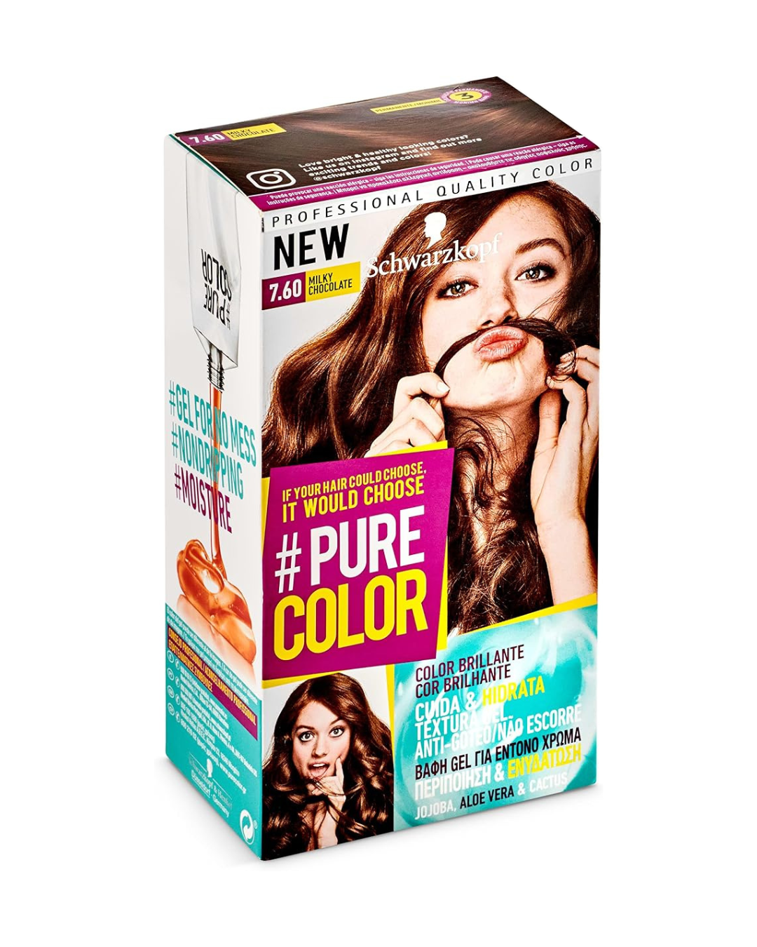 La Schwarzkopf #Pure Color 7.60 Milky Chocolate es la elección ideal para quienes desean un cambio de look vibrante, brillante y con un extra de cuidado, todo en una aplicación sencilla y sin complicaciones.